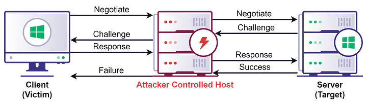Net-NTLM Relay攻击发生在NTLM认证的第三步,其中Response消息存在Net-NTLM hash,攻击者获得可以重放进行中间人攻击。