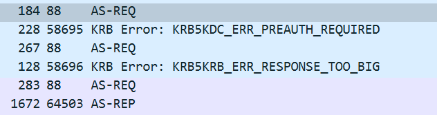 注:KRB5KRB_ERR_RESPONSE_TOO_BIG表示来自服务器的响应太大,无法容纳在单个 UDP 数据包中,从而导致其被丢弃