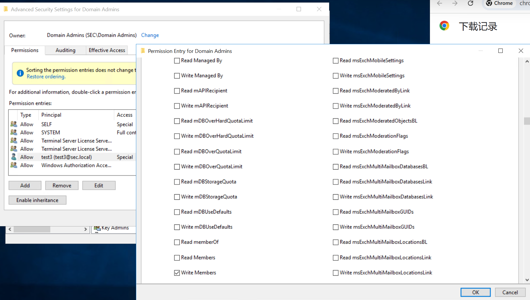 VERBOSE: [Add-DomainObjectAcl] Granting principal CN=test3,CN=Users,DC=sec,DC=local 'WriteMembers' on CN=Domain