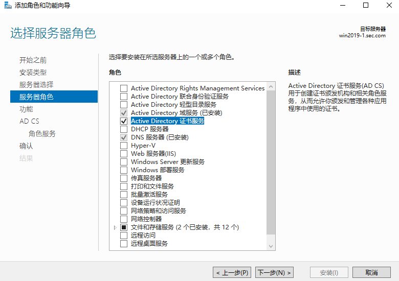 1、添加角色证书颁发机构