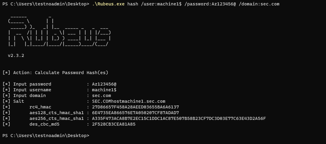 .\Rubeus hash /user:machine1$ /password:Az123456@ /domain:sec.com