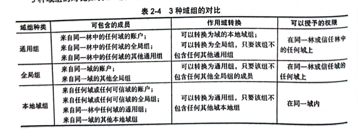 3、通用组可以包含所有域的用户、全局域和通用组,不能包含所有域的本地组。