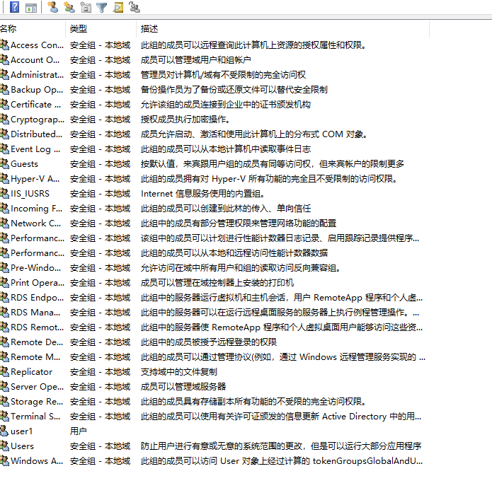 在创建活动目录的时候会自动创建一些组,这些组默认有指定的权限,把用户或者组添加进去就会继承拥有权限。